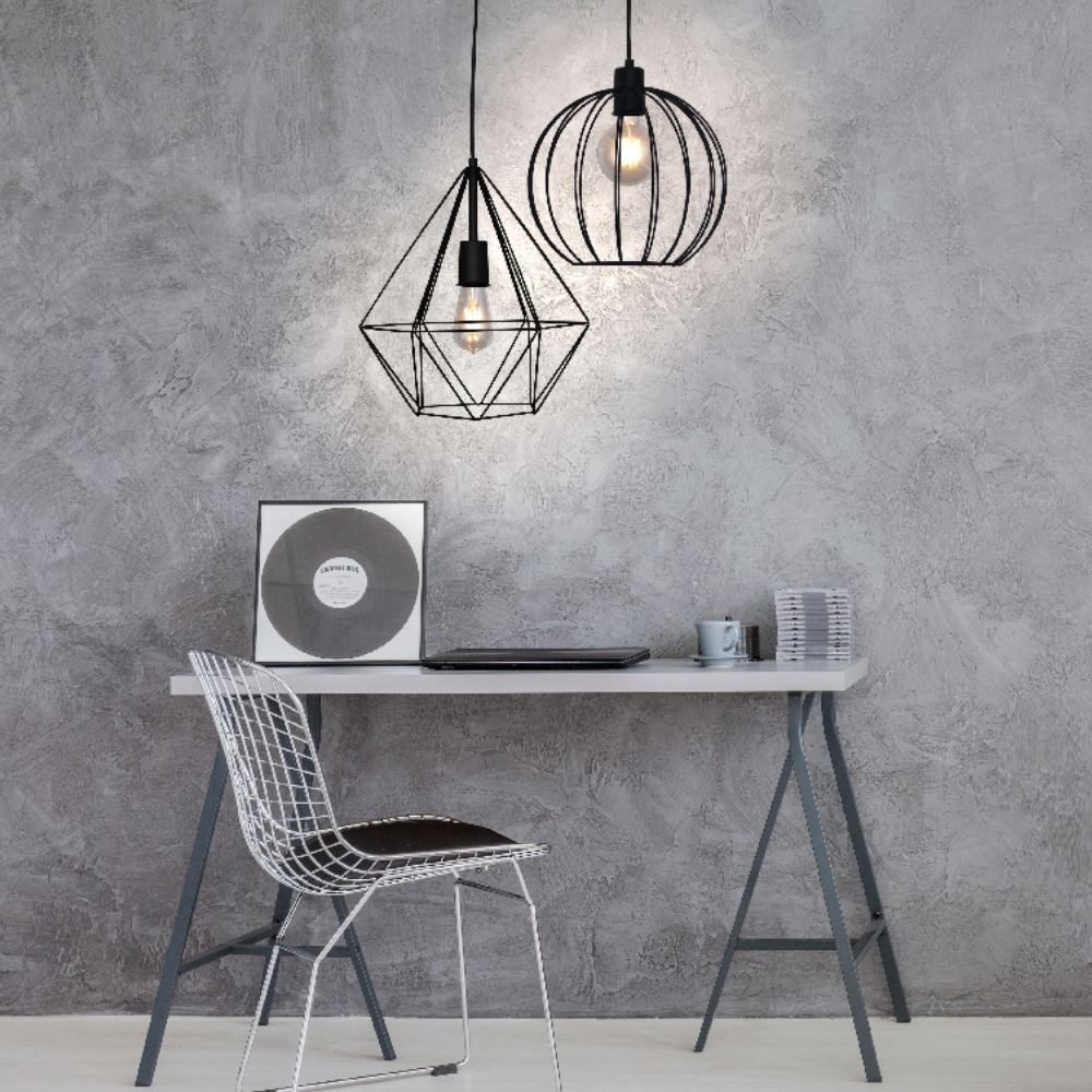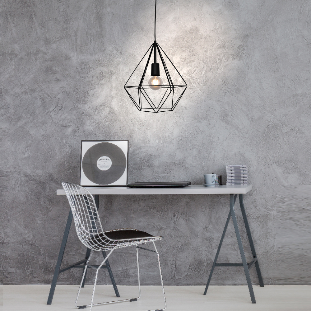 O Lustre Pendente Aramado Diamante Diamante Gde Gold – 3006 GDE PT , de estilo industrial, é muito funcional por iluminar bem o