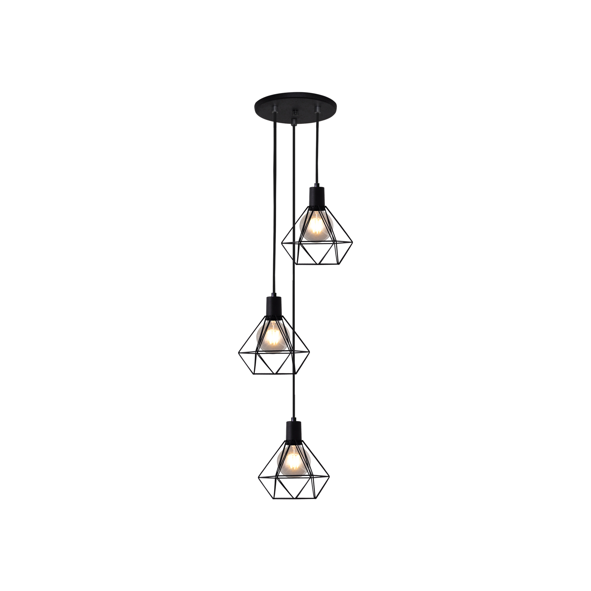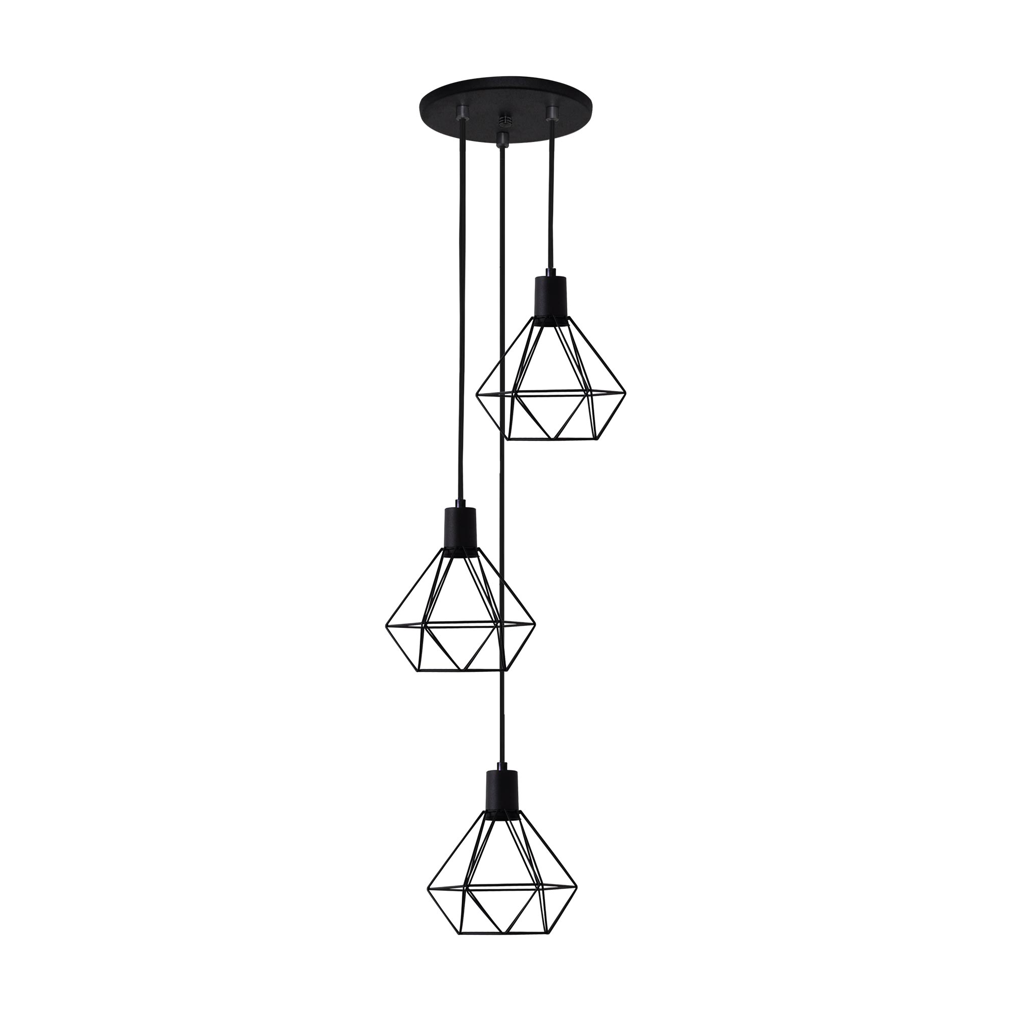 Lustre Pendente Aramado Diamante Peq 3lamp E27 Preto – 3006/3 PEQ PT