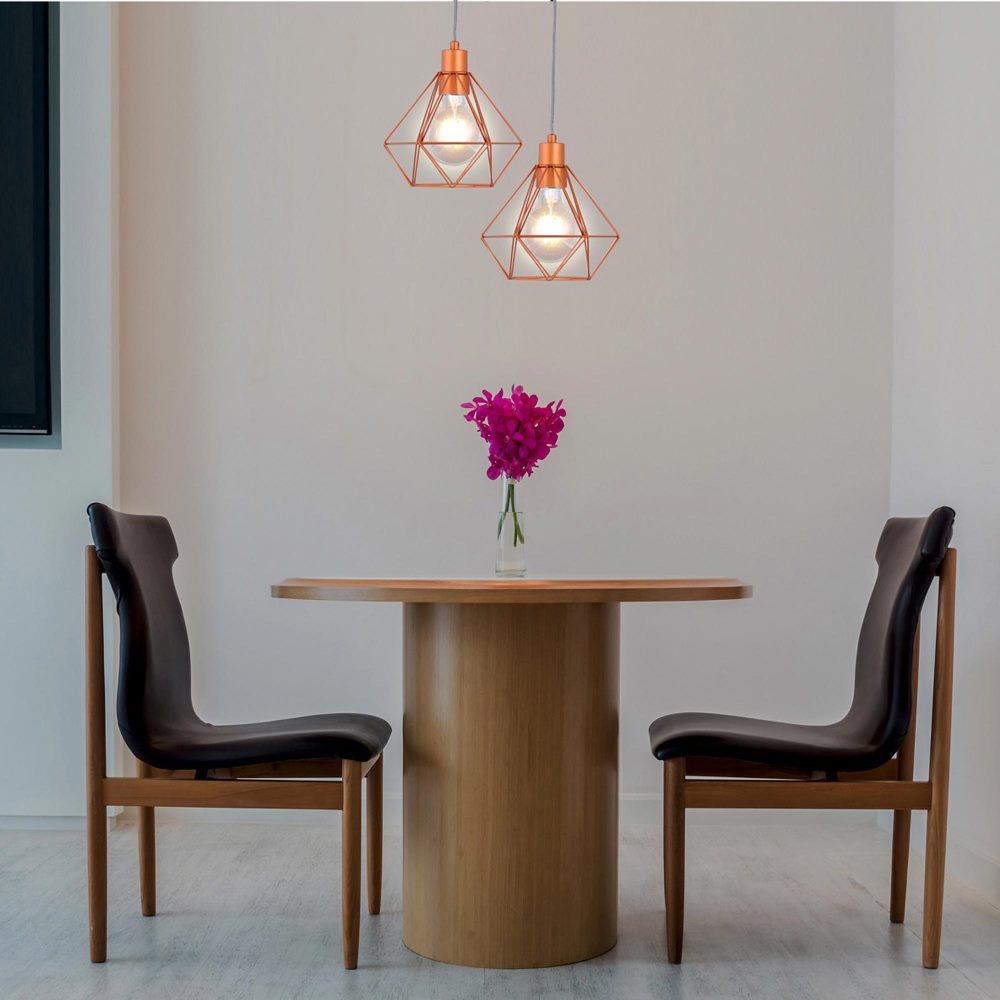 A Luminária Aramado Diamante Peq Cobre- 3006 PEQ CB de estilo industrial, é muito funcional por iluminar bem o ambiente, fica ainda mais charmosa